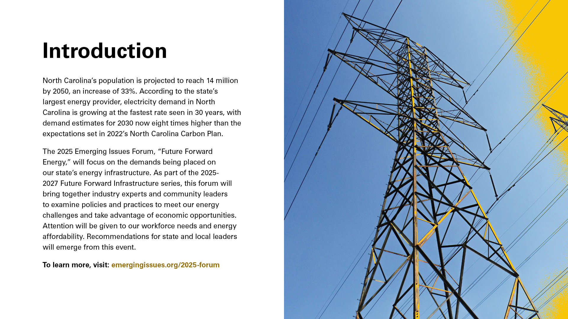 Future Forward Energy, a part of the Future Forward Infrastructure forum series organized by the Institute for Emerging Issues, focused on challenges related to energy infrastructure in North Carolina as the state's population continues to grow.
